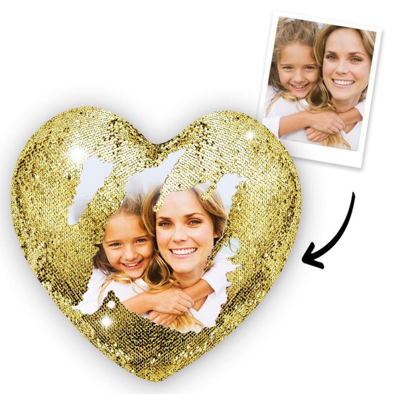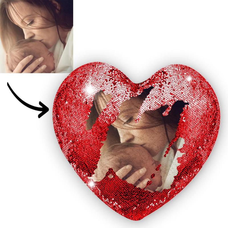 Custom Photo Magic Heart Sequins Pillow for Mom
