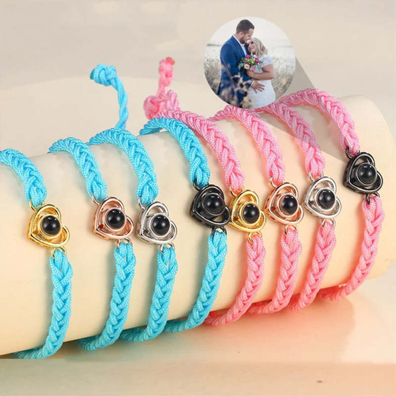 Custom Photo Projection Braided Rope Bracelet Memorial Photo Inside Bracelet Gifts for Her