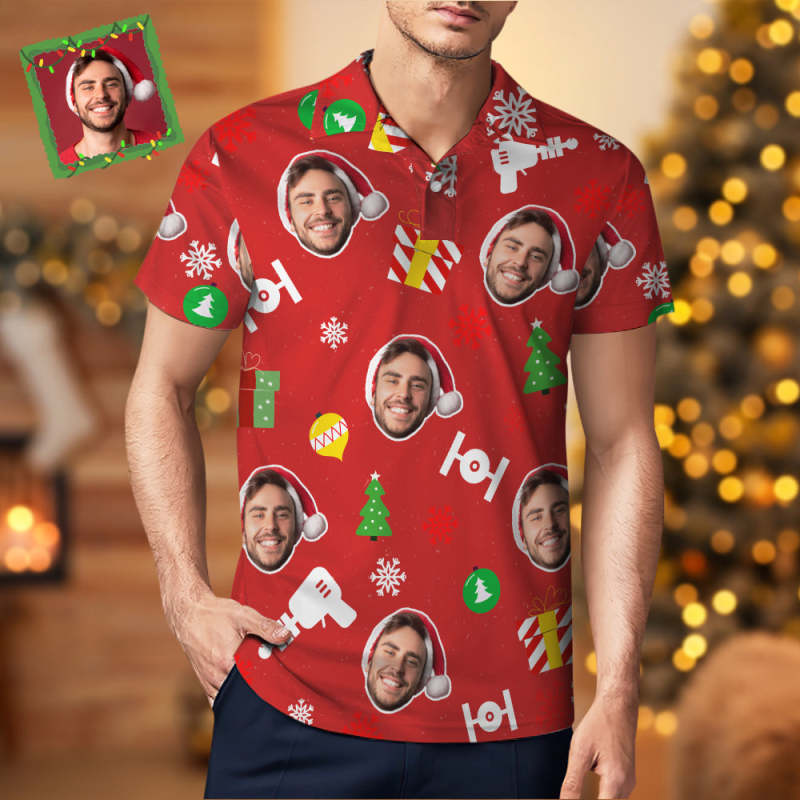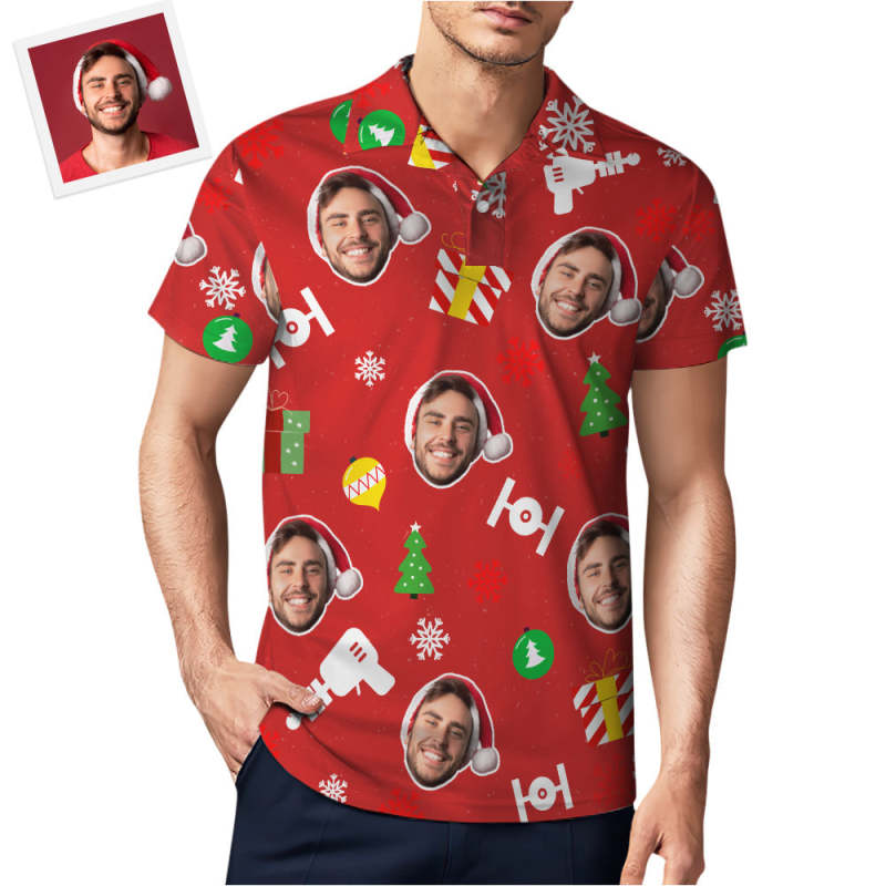 Custom Photo Red Short Sleeve Polo Shirt Personalized Christmas Men's Golf Shirt Mens Tops