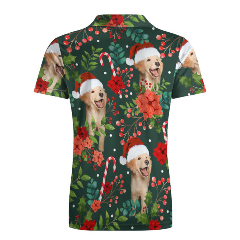 Custom Photo Short Sleeve Polo Shirt Personalized Christmas Poinsettia Flower Golf Shirt Mens Tops