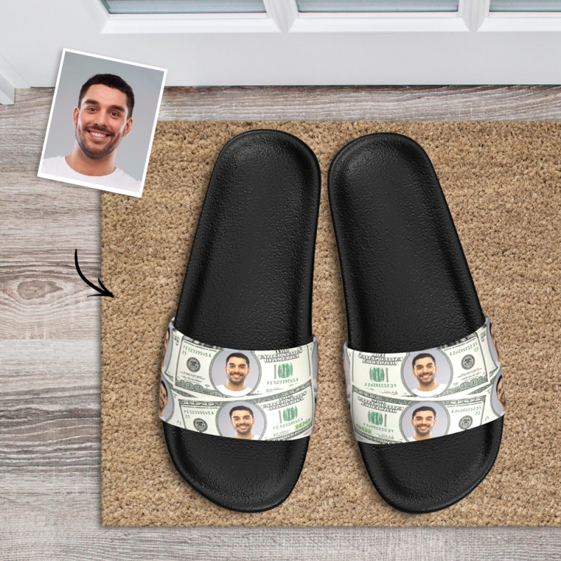 Custom Photo Slide Sandals Personalized Couple Face Slide Sandal For Summer Custom Gifts For Him/Her - Money