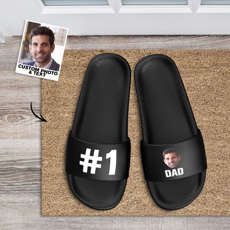 Custom Photo Slide Sandals with Text Personalized Couple Face Slide Sandal For Summer Custom Gifts For Him/Her - No.1 Dad