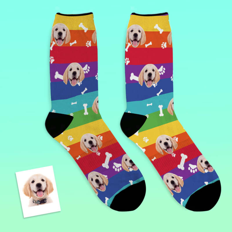Custom Photo Socks Rainbow Socks Dog Add Pictures And Name