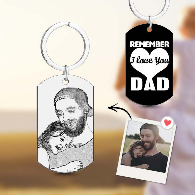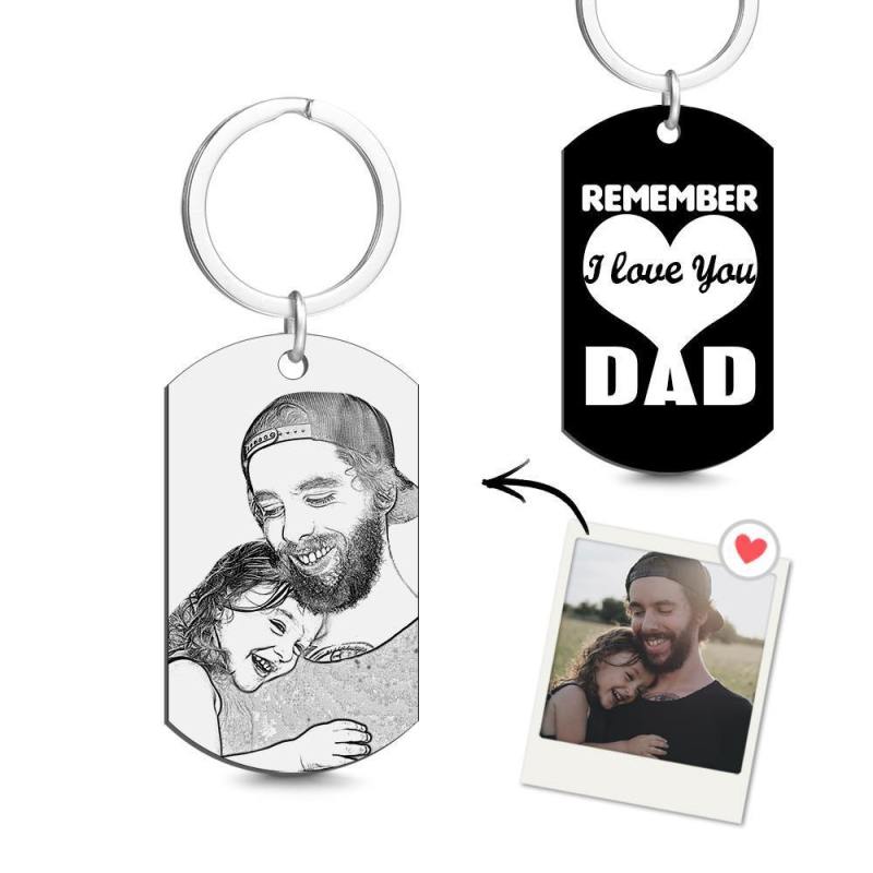 Custom Photo Tag Keychain Remember I love You DAD Gifts for Father's Day
