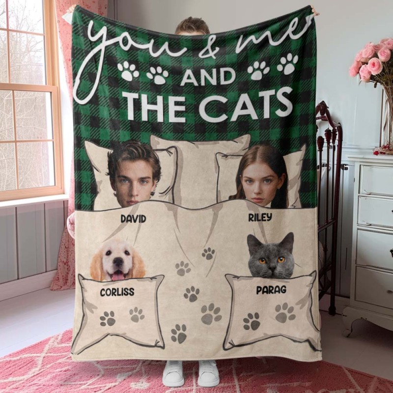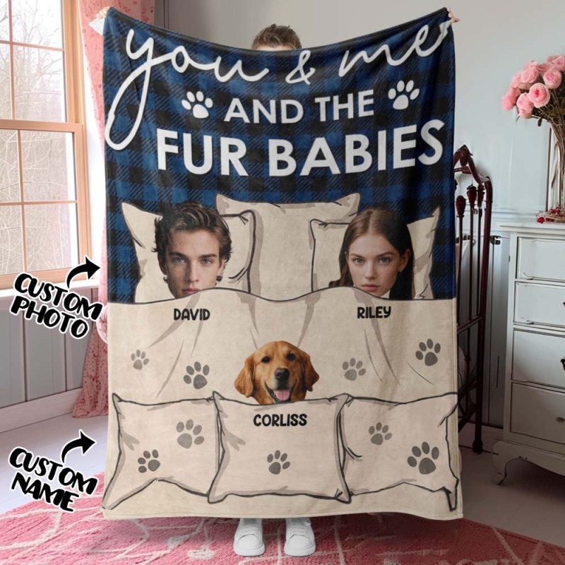 Custom Photo You & Me And The Dogs Cats Fur Babies Personalized Blanket Name And Photo Gift for Family