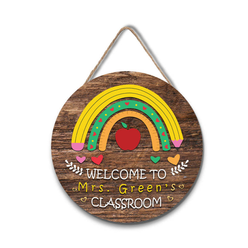 Custom Rainbow Teacher Name Door Sign, Welcome Sign Gift for Teacher
