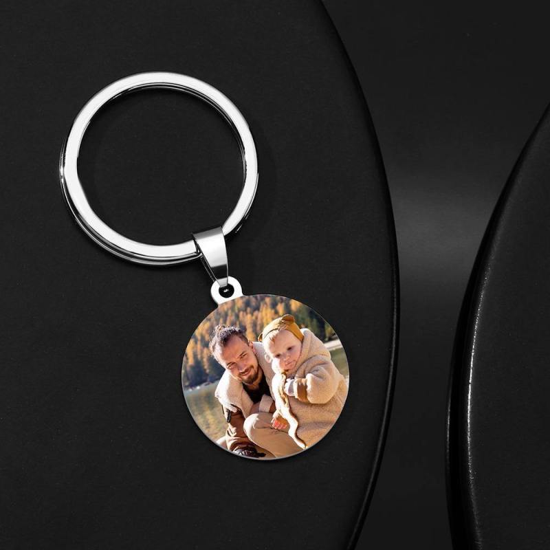 Custom Round Tag Photo Keychain I LOVE YOU THREE THOUSAND Father's Day Gifts