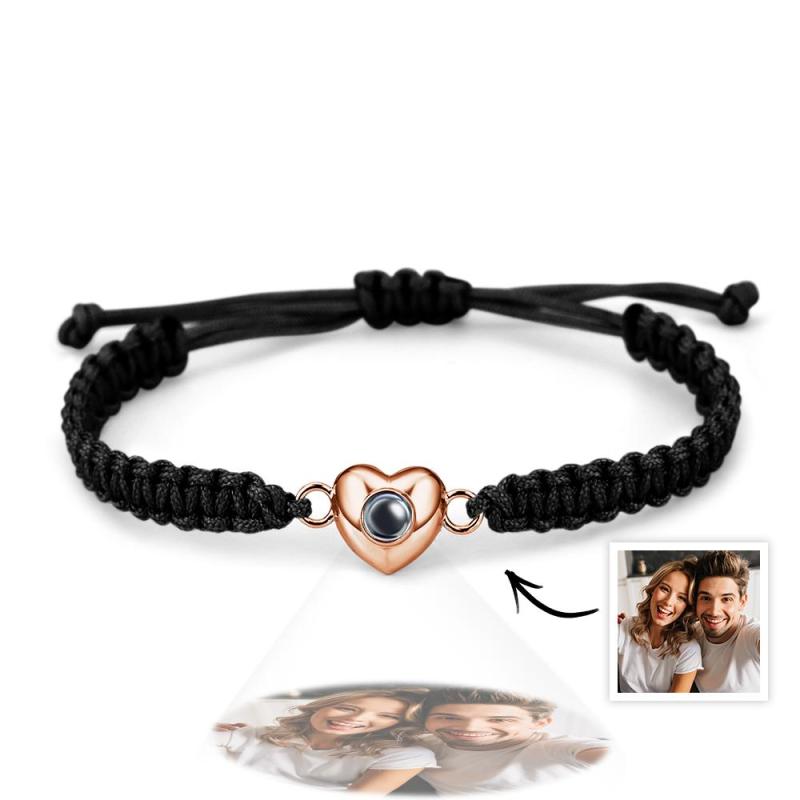 Custom Simple Fashion Black Rope Heart Shaped Picture Projection Bracelet