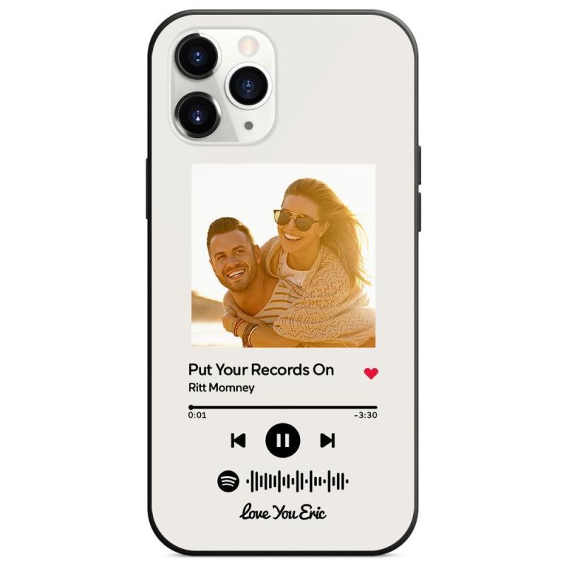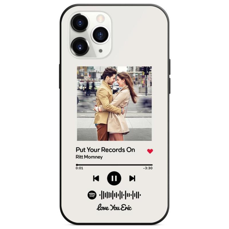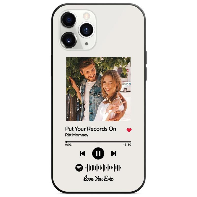 Custom Spotify Code Music Glass Surface iPhone Case Christmas Gift With Text-White