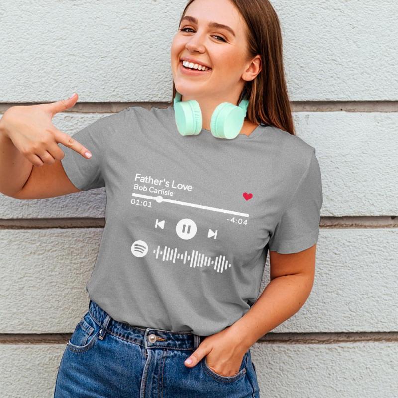 Song Player Scannable Spotify Custom Code T-Shirt Grey