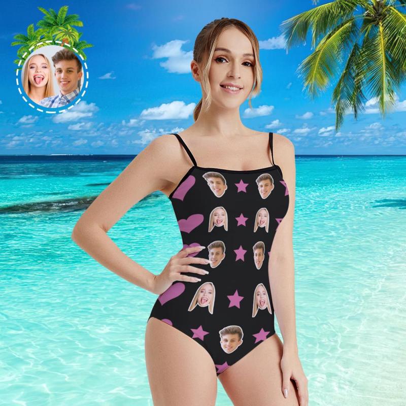custom star couple head photo women's swimsuit