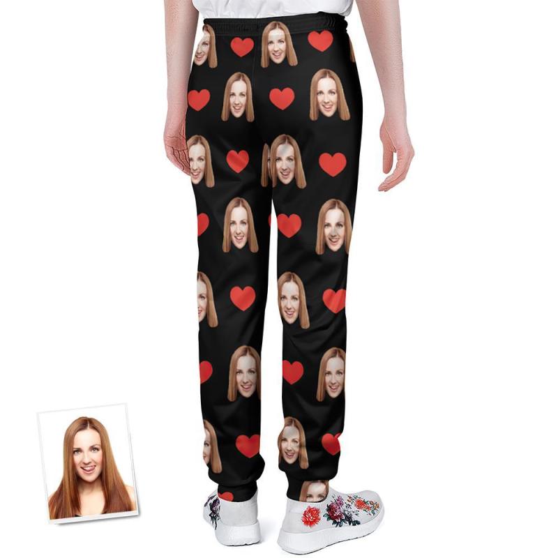 Custom Sweatpants Unisex Joggers with Face Heart Pattern