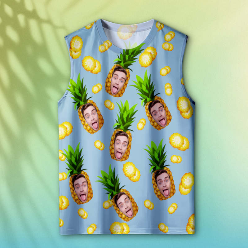 Custom Thick Face Tank Tops Men's Sleeveless Shirt Big Pineapple