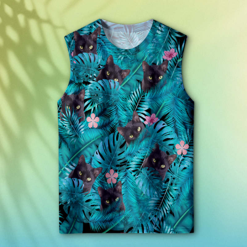 Custom Thick Face Tank Tops Men's Sleeveless Shirt Black Cat
