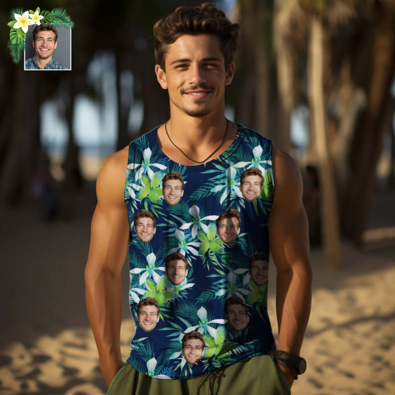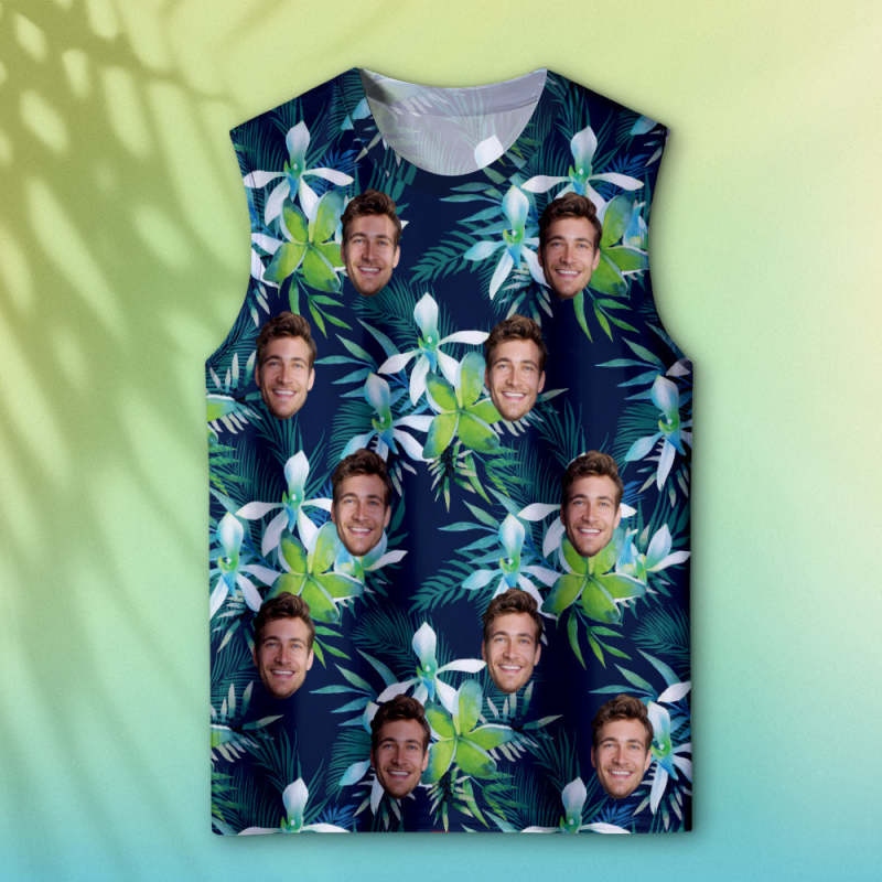 Custom Thick Face Tank Tops Men's Sleeveless Shirt Leaves Petal