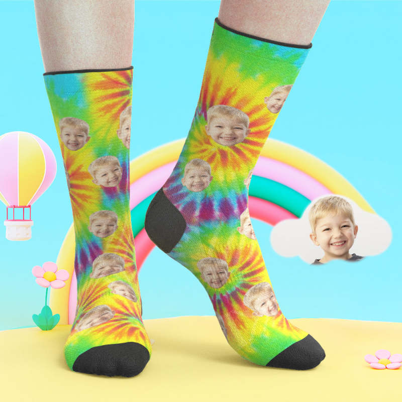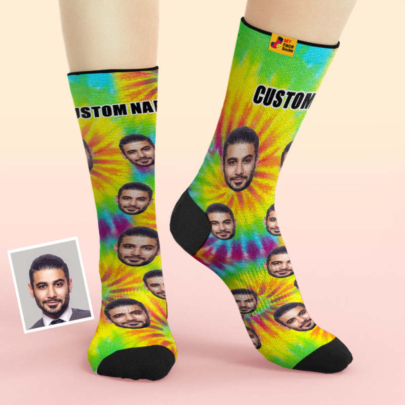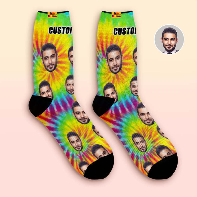 Custom Tie Dye Style Breathable Face Socks Personalized Soft Socks Gifts