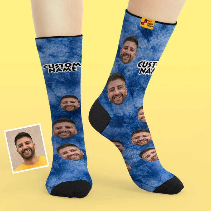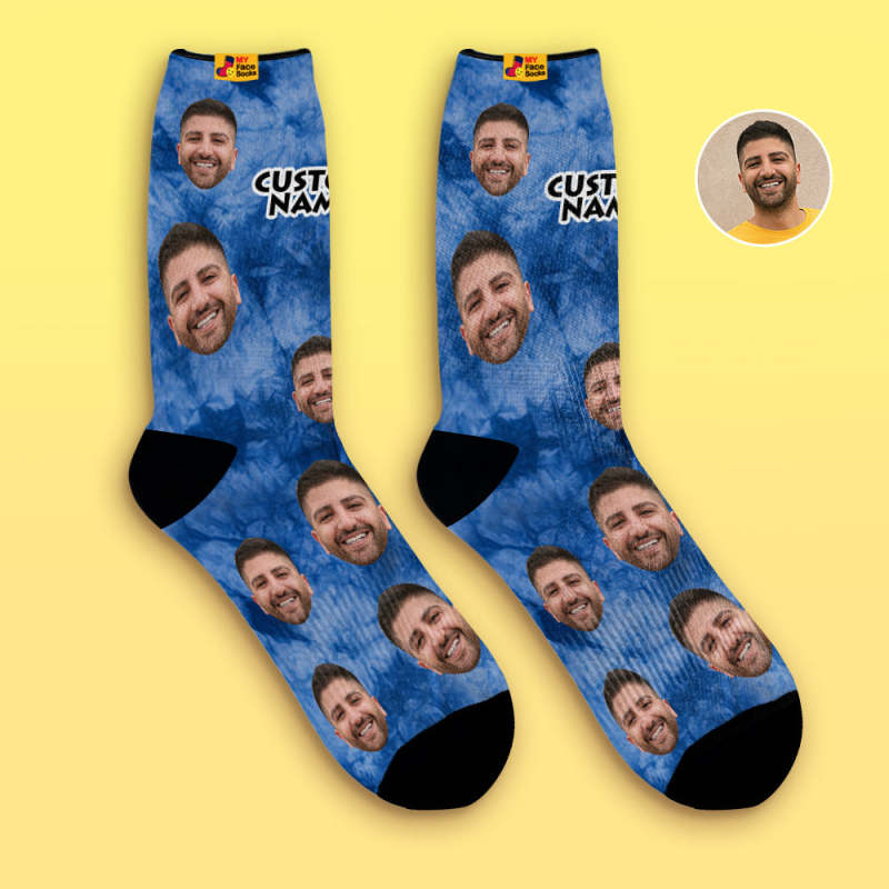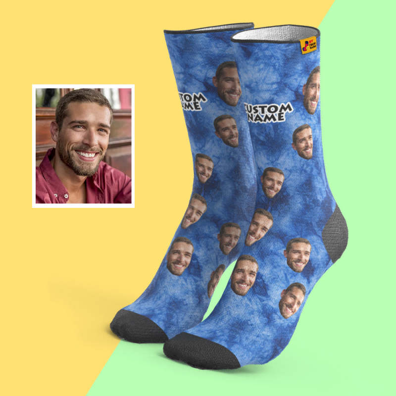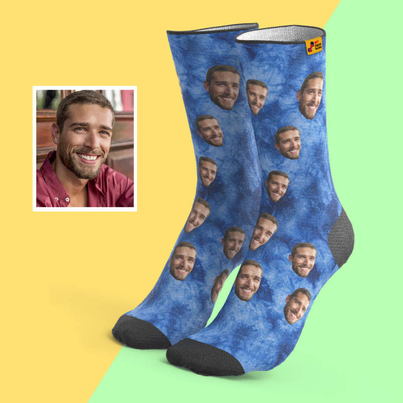 Custom Tie Dye Style Breathable Face Socks Personalized Soft Socks Gifts