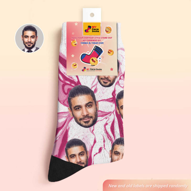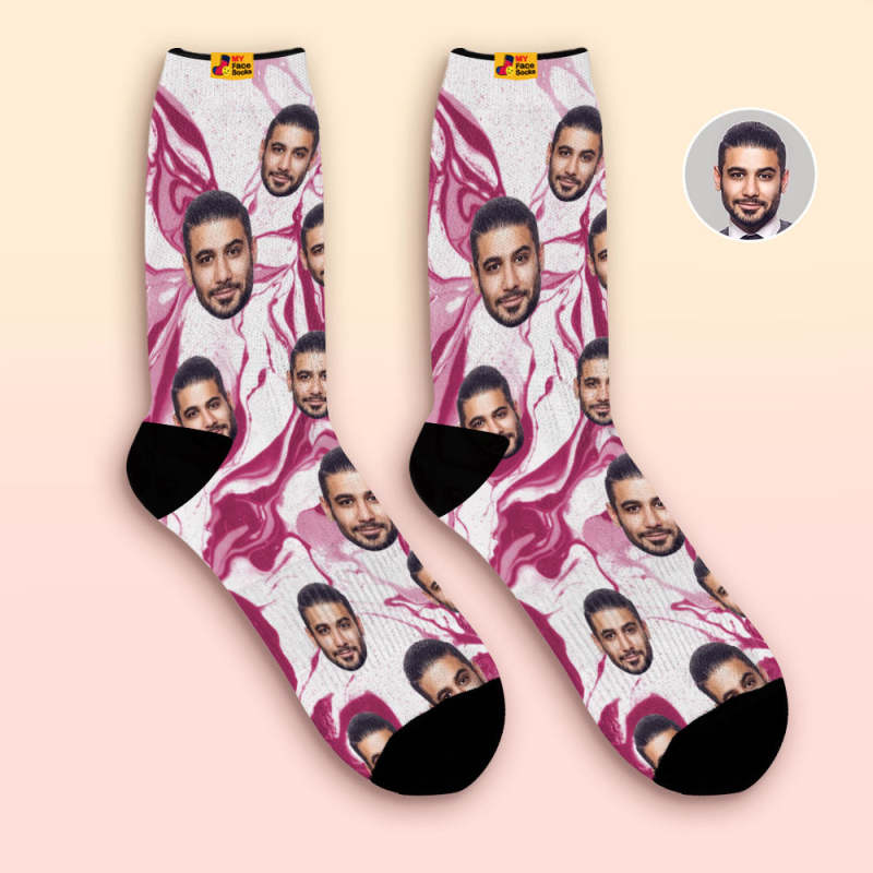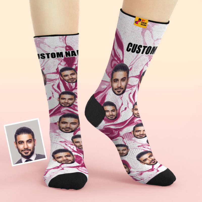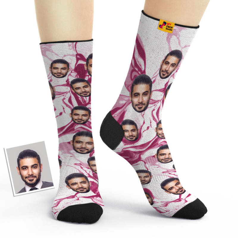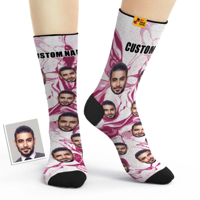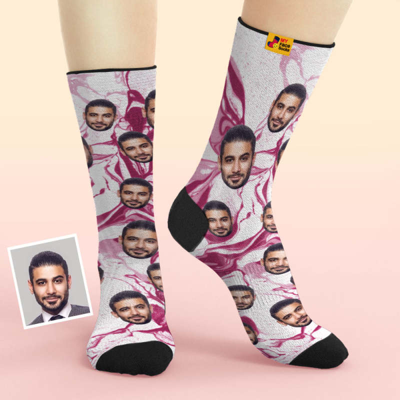 Custom Tie Dye Style Breathable Face Socks Personalized Soft Socks Gifts Purple