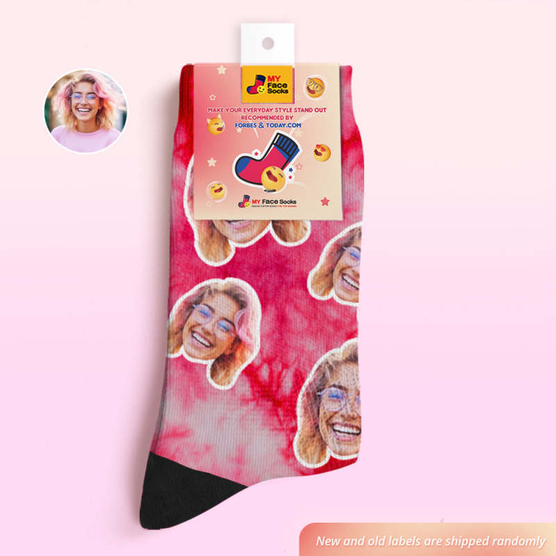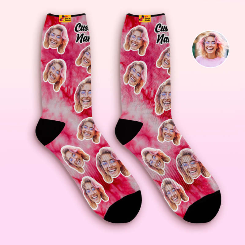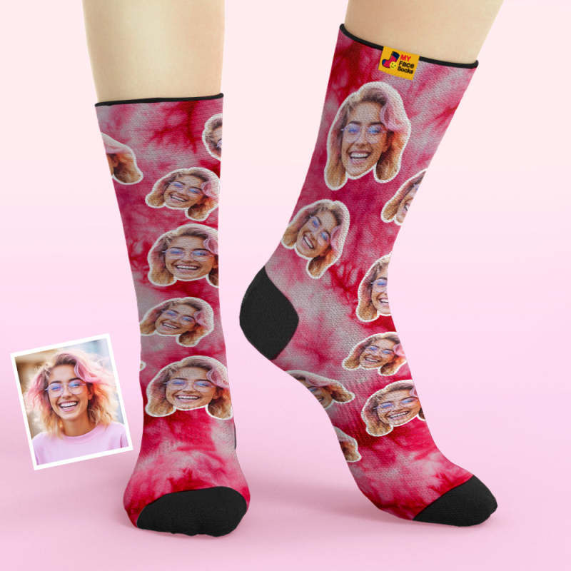 Custom Tie Dye Style Breathable Face Socks Personalized Soft Socks Gifts Red Color