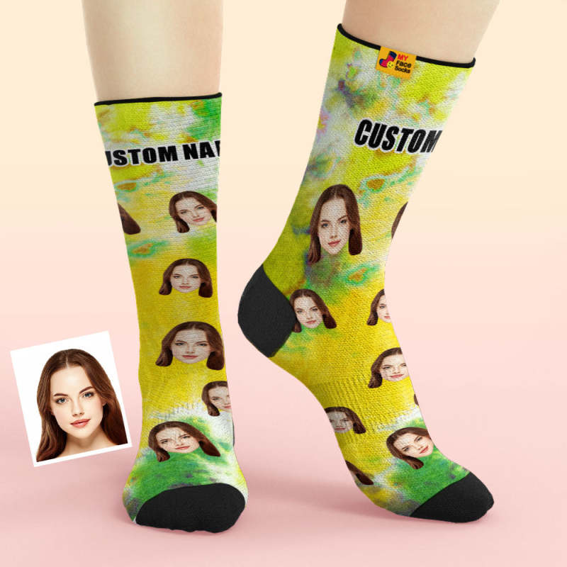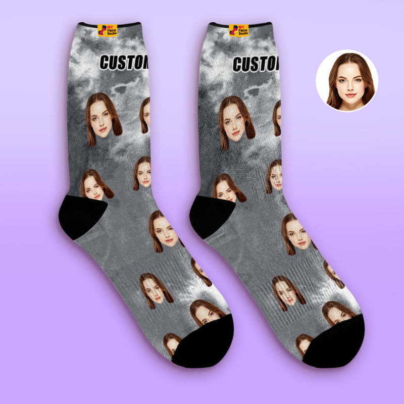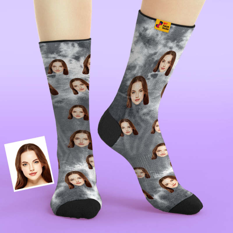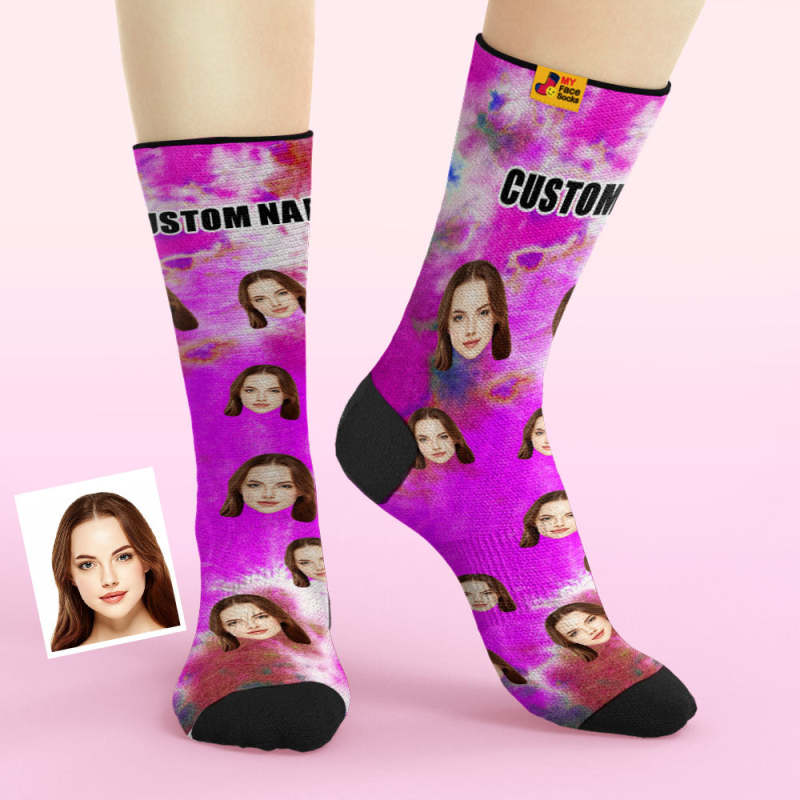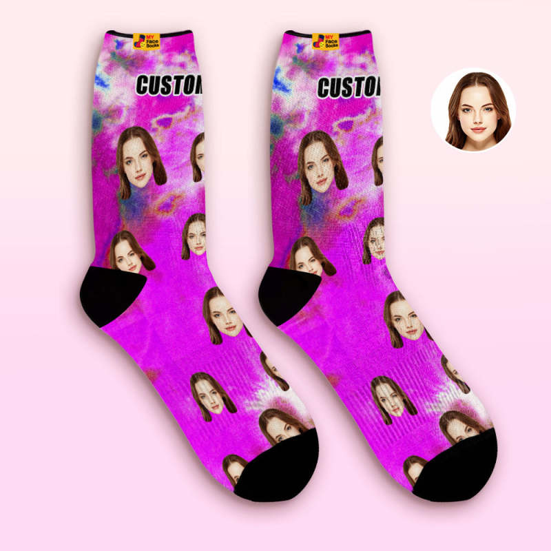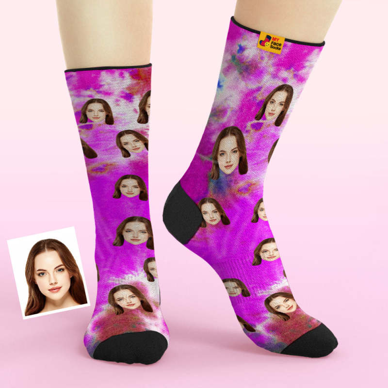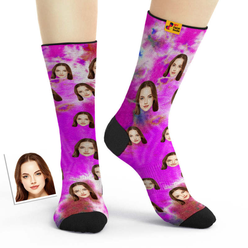 Custom Tie Dye Style Breathable Face Socks Personalized Soft Socks Gifts Violet