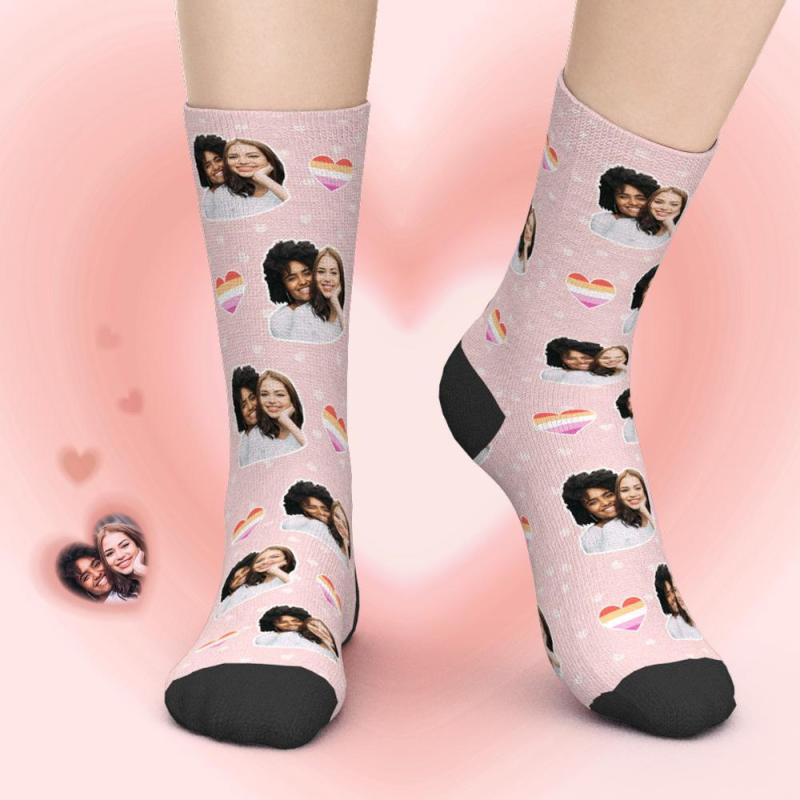 LGBT Gifts, Custom Face Socks Add Pictures - LGBT Rainbow Heart