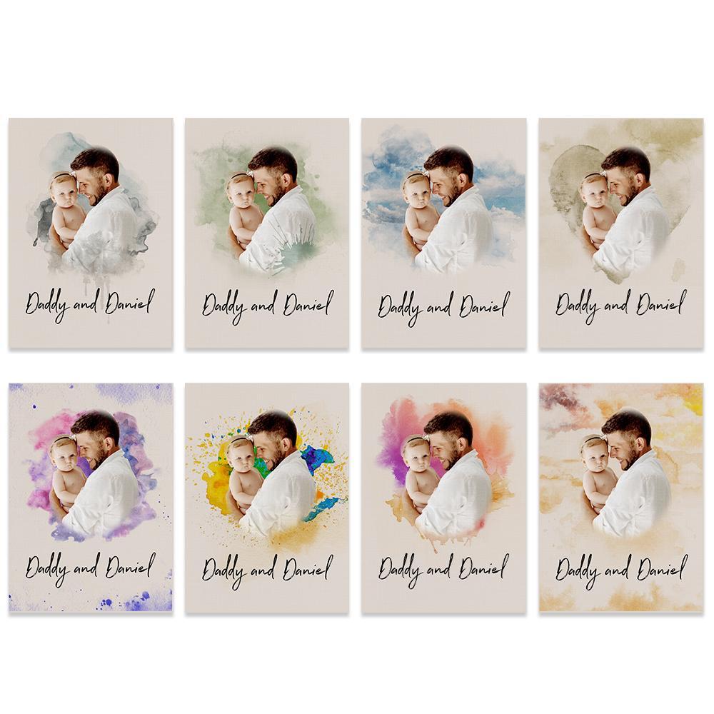 Custom Wall Art Watercolor Photo Aquarelle Oil Painting Frameless Father's Day Gift