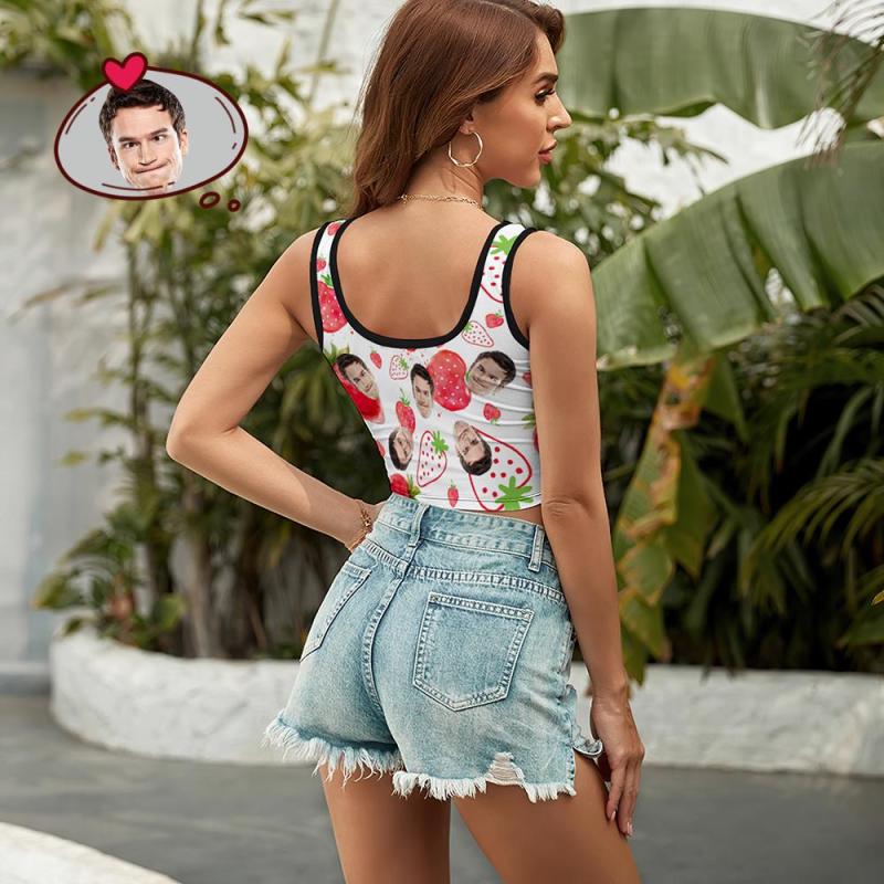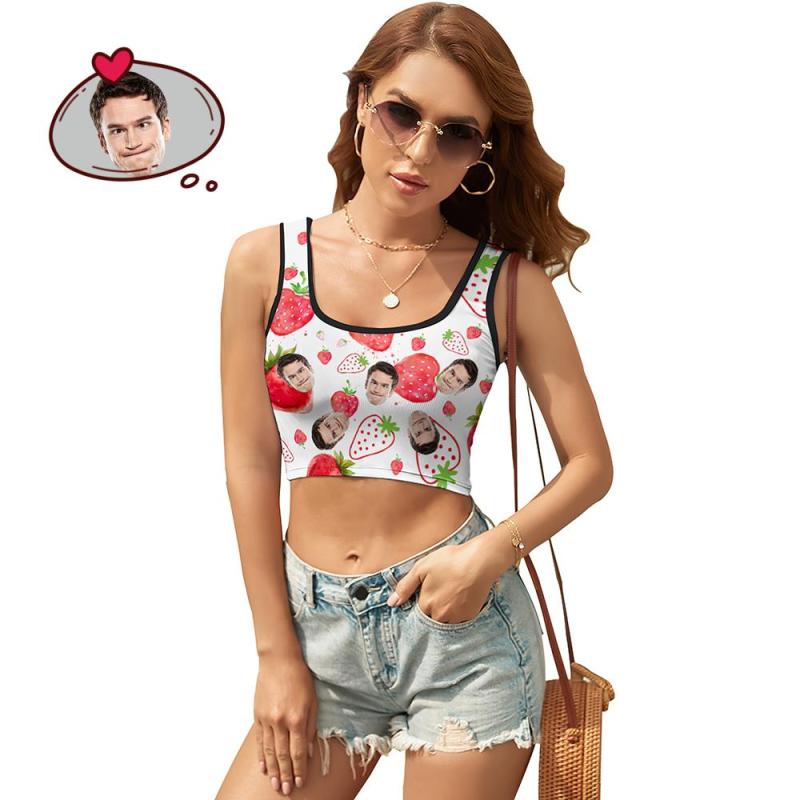 Custom Women's Photo Short Vest Personalised Face Tank Top Crop Top - Strawberry