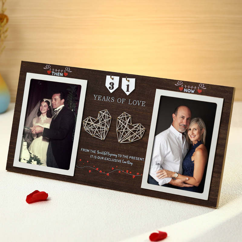 Custom Wooden Photo Frame Personalized Photo Home Decor Then & Now Picture Frame Wedding Anniversary Gift
