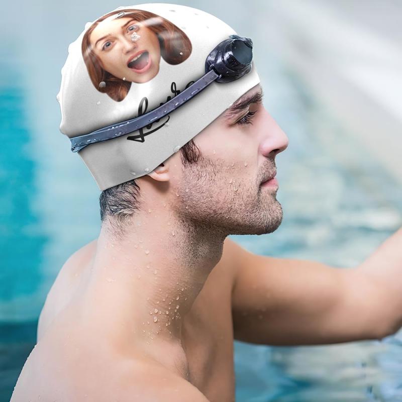 Custom Your Face Swim Cap with Text Silicone Printed Cap Unisex-Adult Swim Cap Gifts For Sports Lovers