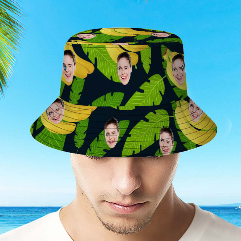 Custom Your Photo Face And Pet Summer Bucket Hat Fisherman Hat - Banana