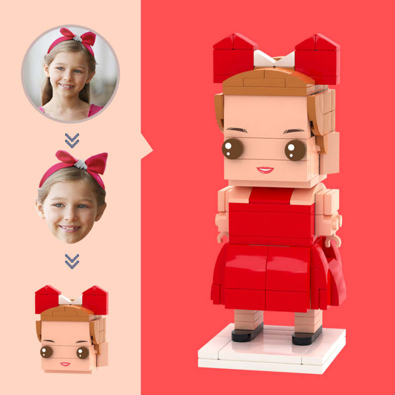 Customized Head Children's Red Skirt Figures Small Particle Block Toy Customizable Brick Art Gifts