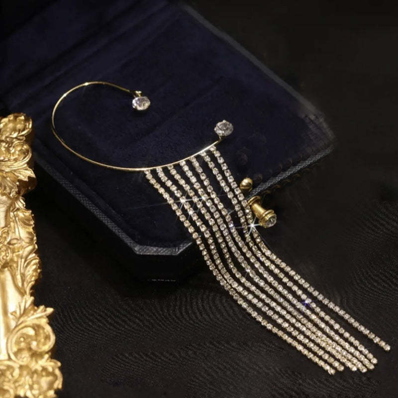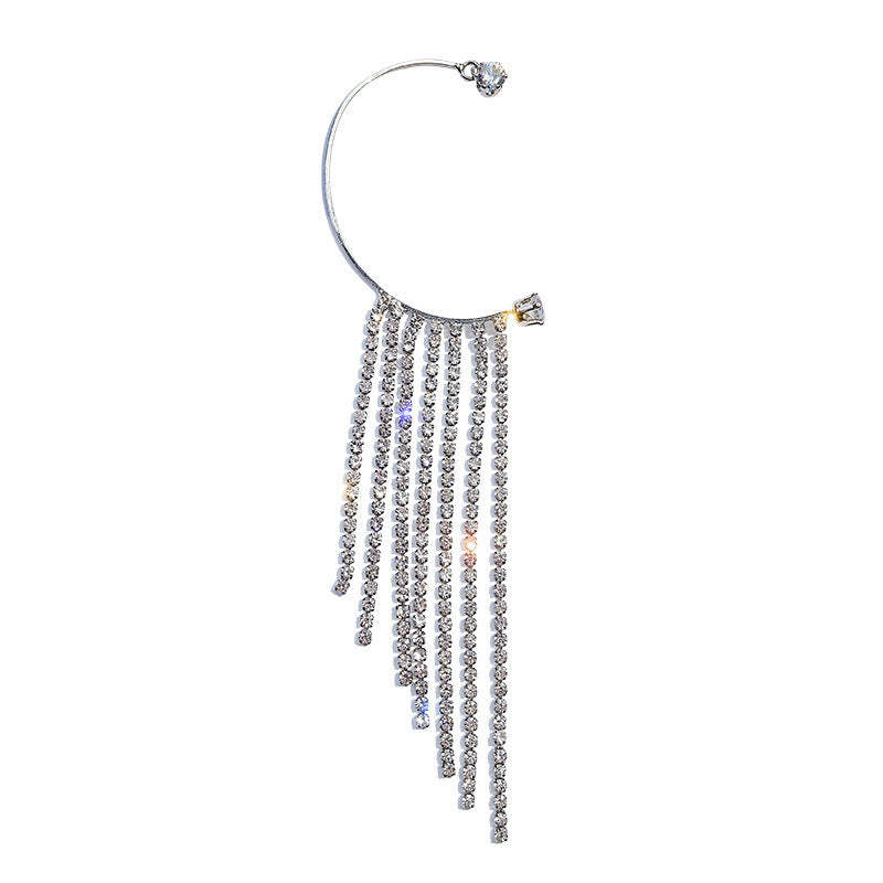 Geometric C-Shaped Flashing Diamond Tassel Earrings Are Thin And Personalized Ear Clips Without Pierced Female Earrings