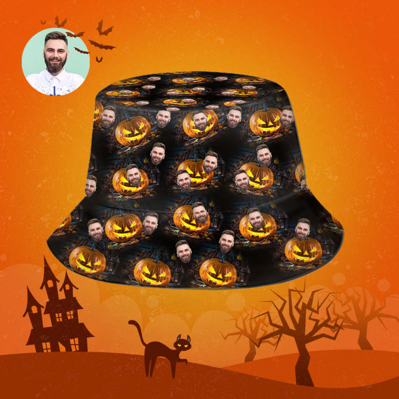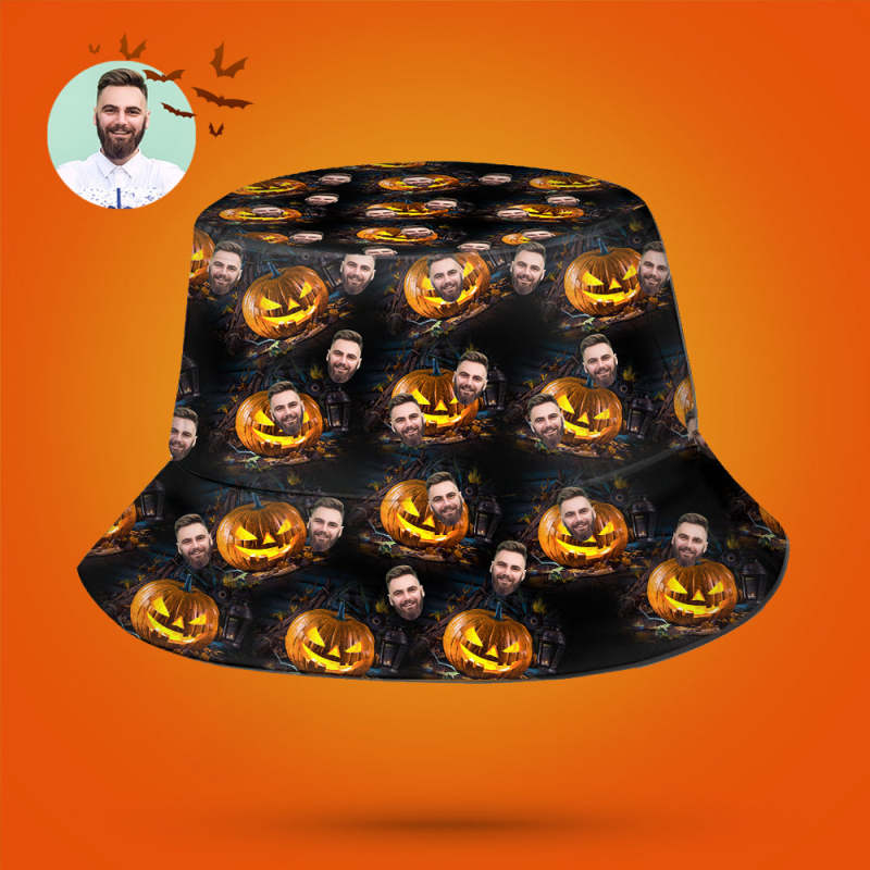 Halloween Gift Custom Bucket Hat Personalized Photo Hat - Scary Pumpkin