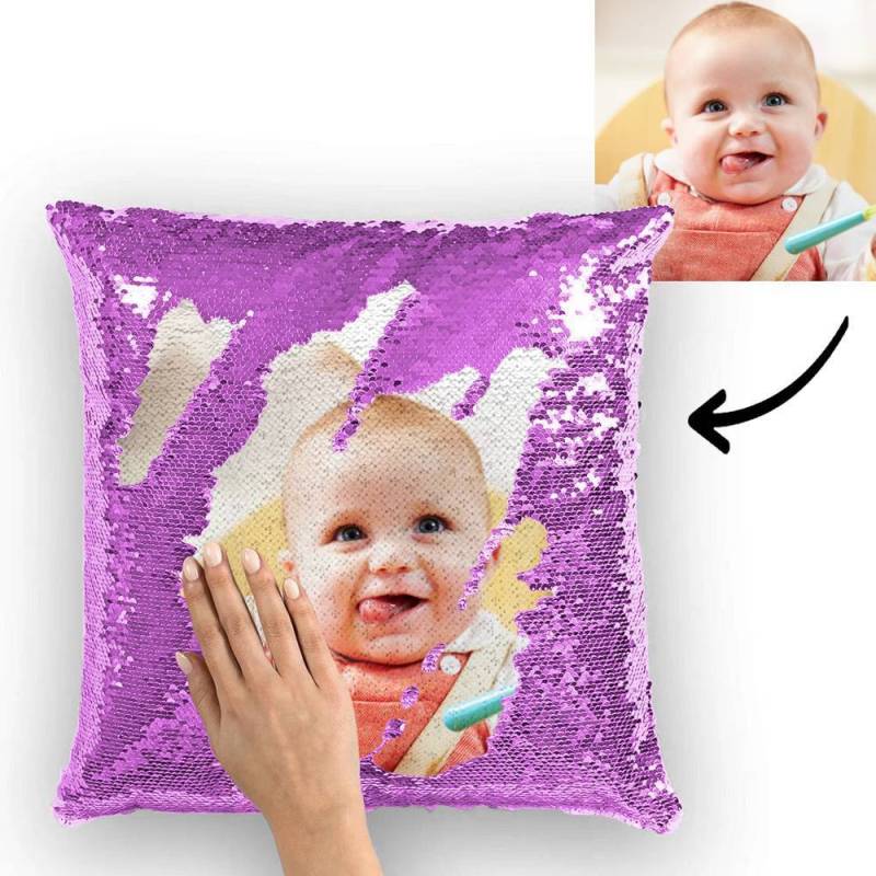 Halloween Gifts Custom Cute Baby Photo Magic Sequins Pillow Multicolor Shiny 15.75*15.75