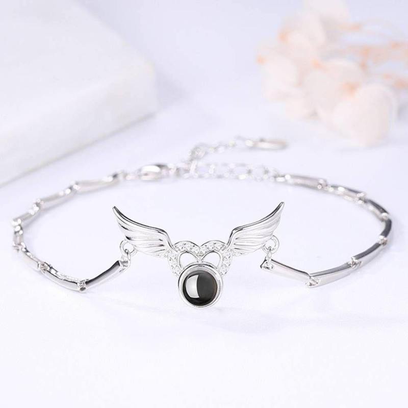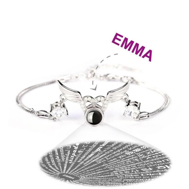 I Love You Bracelet in 100 Languages Projection Engraved Bracelet Angel Wings Silver
