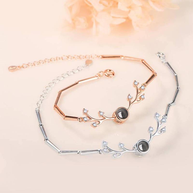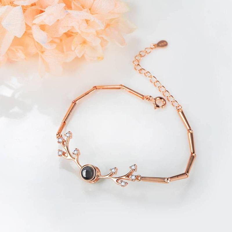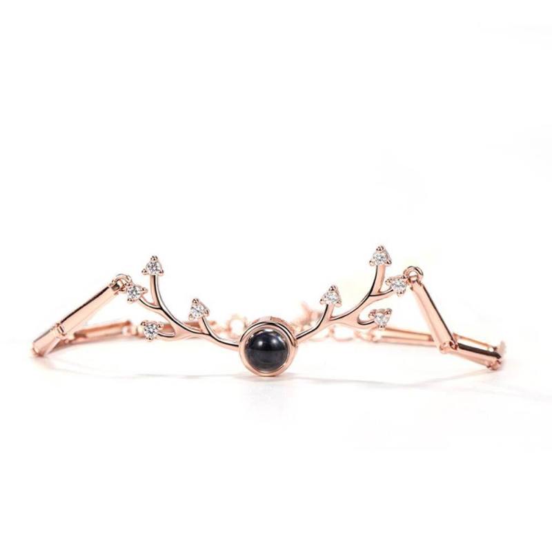 I Love You Bracelet in 100 Languages Projection Engraved Bracelet Antlers Rose Gold Plated - Silver