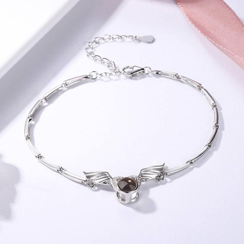 I Love You Bracelet in 100 Languages Projection Photo Engraved Bracelet Angel Wings Silver