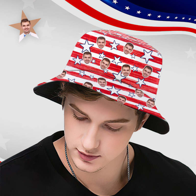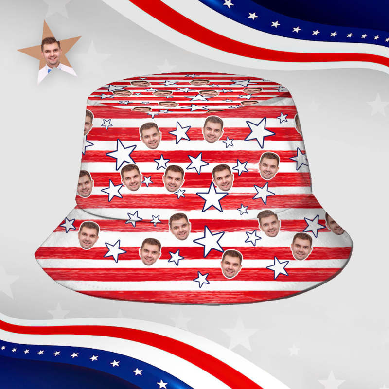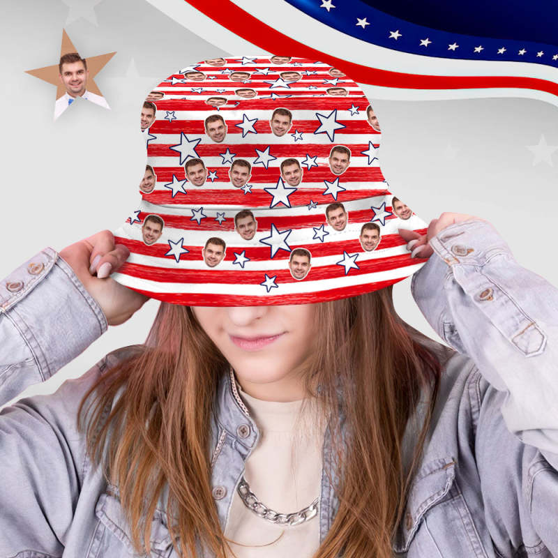 Independence Day Custom Bucket Hat Face Unisex Fisherman Hat Summer Hat - Red Hat