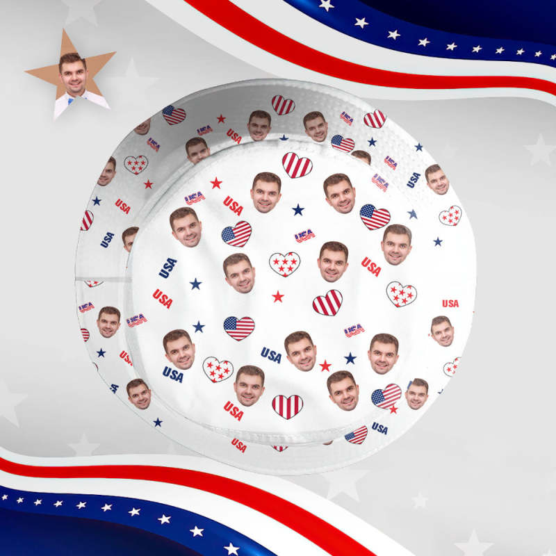 Independence Day Custom Bucket Hat Face Unisex Fisherman Hat Summer Hat - USA