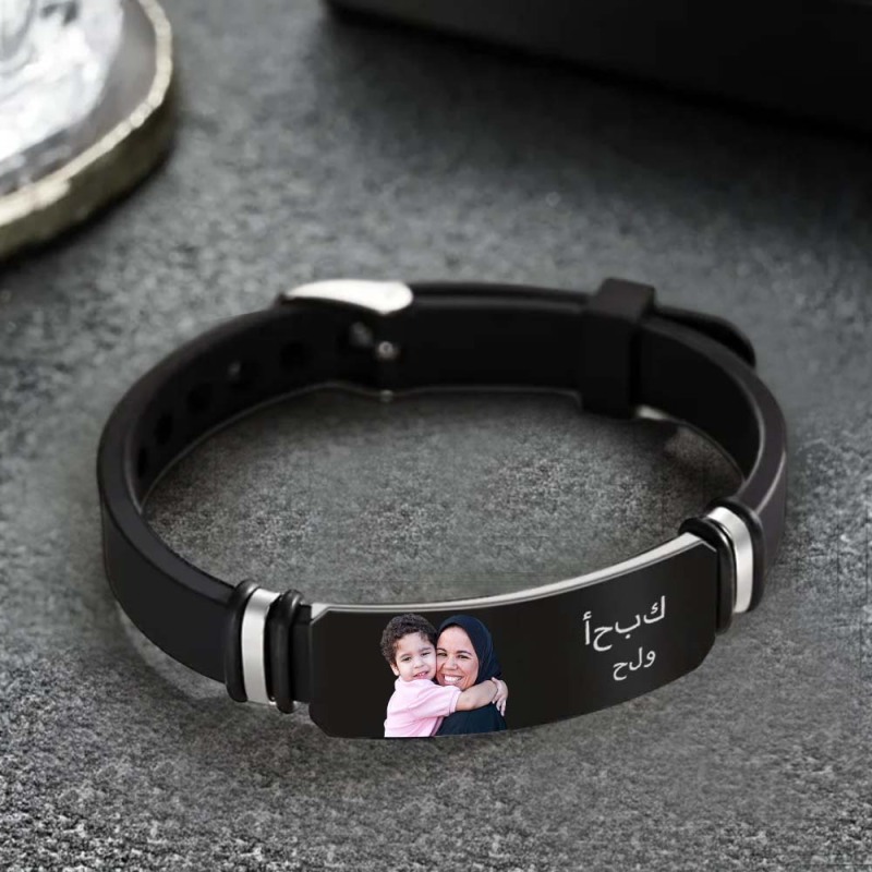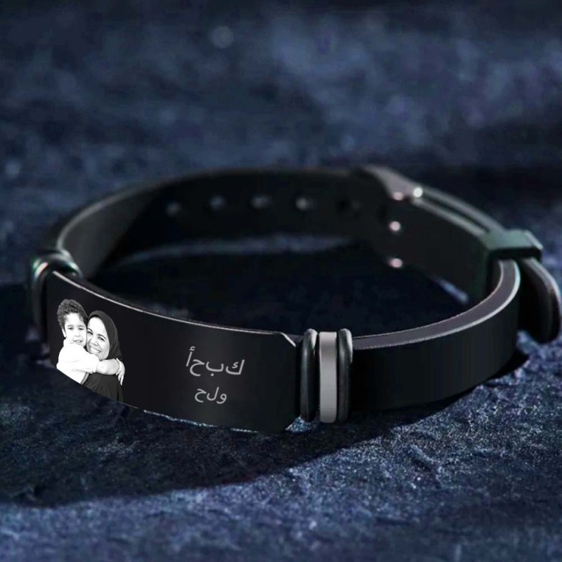 هدايا حميمة للأم والابن مخصصة للرجال صور محفورة سوار أسود له سوار شخصي للرجال هدية مثالية ل