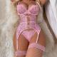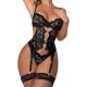 Lace Garter Lingerie Set Teddy Babydoll Strappy Bra and Panty Set