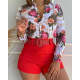 Ladies Printed Long Sleeve Shirt Set Hwaiian Style - Rose