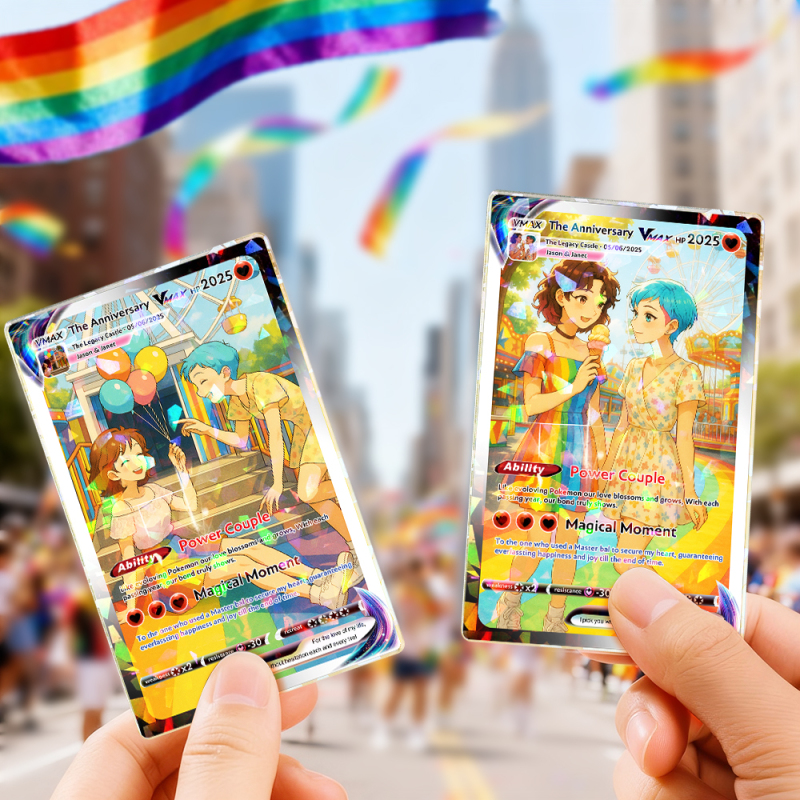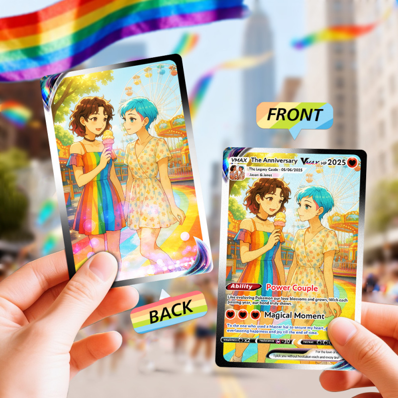 LGBT Couple Custom Trading Card Cartoon Art Style Collectible Personalized Christmas Gift for Him or Her