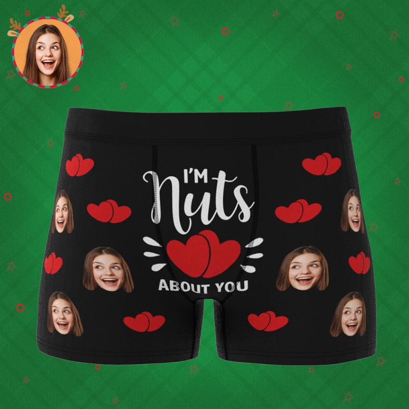 Men Customized Photo Boxer 3D Online Preview Girlfriend's Face - I'm Nuts about You