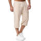 Men's Cotton Linen Cropped Casual Pants Black Linen Men's Clothes
