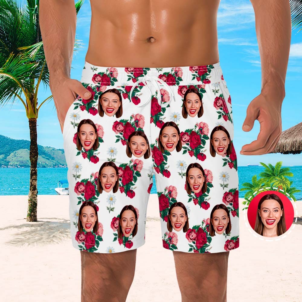Men's Custom Face Beach Trunks All Over Print Photo Shorts Rose Flower