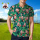 Men's Custom Face POLO Shirt Personalized Green Golf Shirts For Him Hawaiian Pink Flower