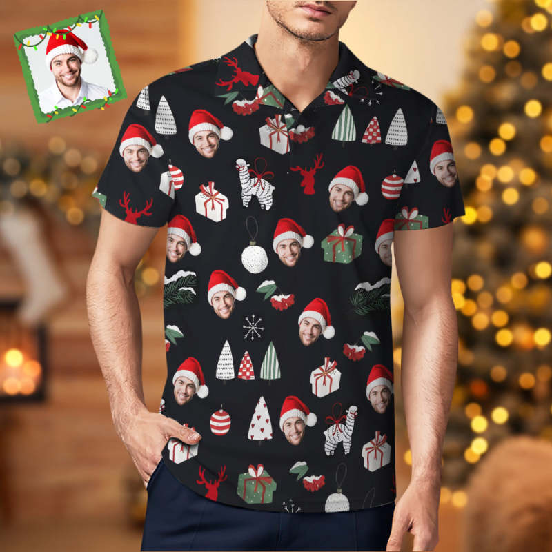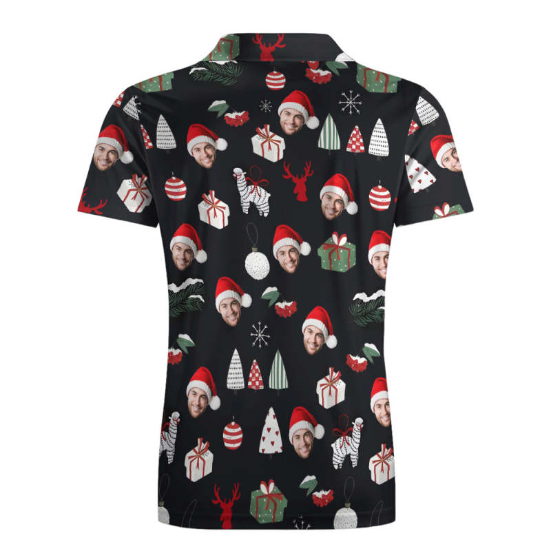 Men's Custom Face Shirt Personalized Short Sleeve Golf Shirts Merry Christmas Gift