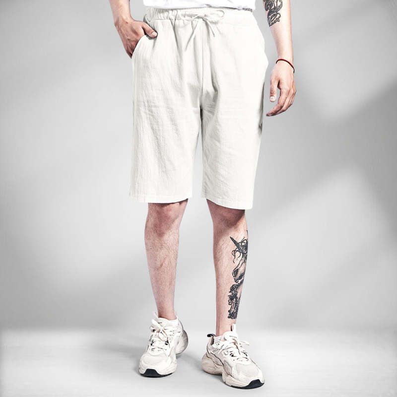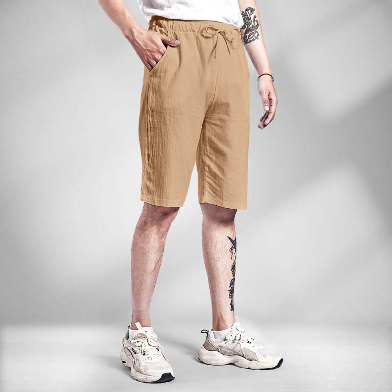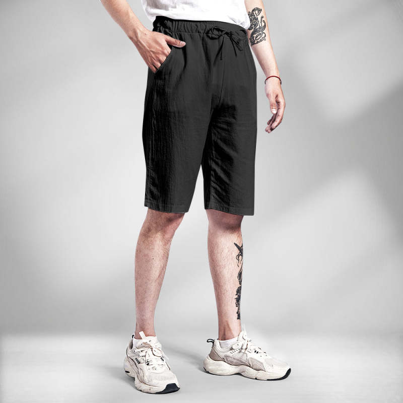 Men's summer loose linen cotton breathable five-point pants casual shorts