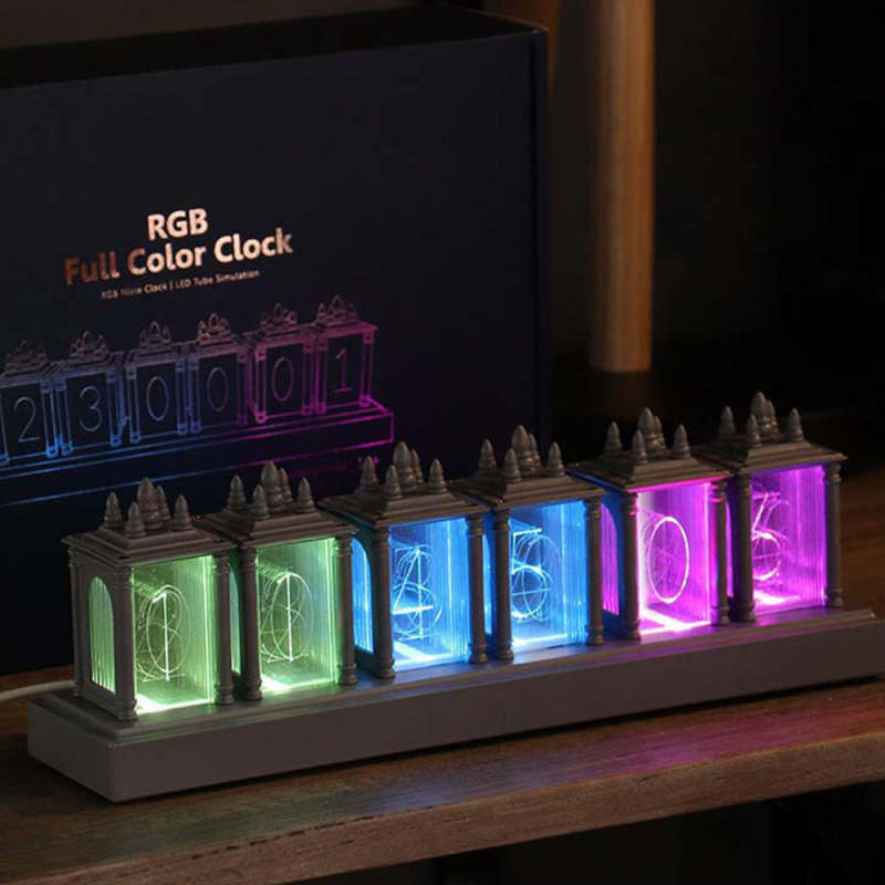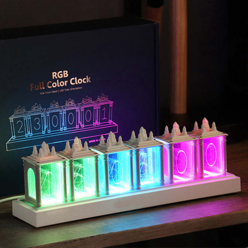 Nixie Tube Clock, RGB Digital Clock, Modern Desktop Clock, DIY Pseudo Glow Tube Clock Kit, Home Decor House Warming Gift